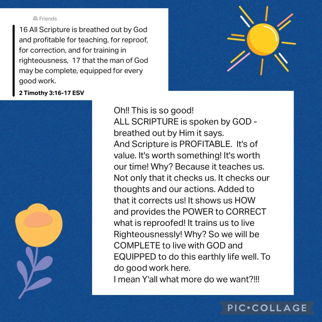 The Word of God is a precious gift and those who have it are truly privileged. We are without excuse when we stand before God to answer for every thought and deed. All we have to do is open it, read it, obey it. If we do that we can stand before Him fully corrected through the power of His Spirit and His Word, righteous.