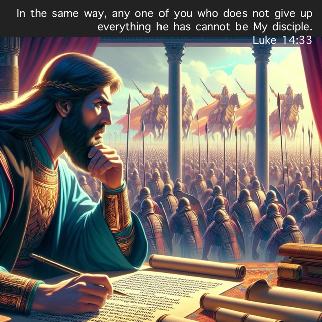 It means count the cost. I hope you will get your Bibles and back up in the chapter. There you will find a king counting the cost.