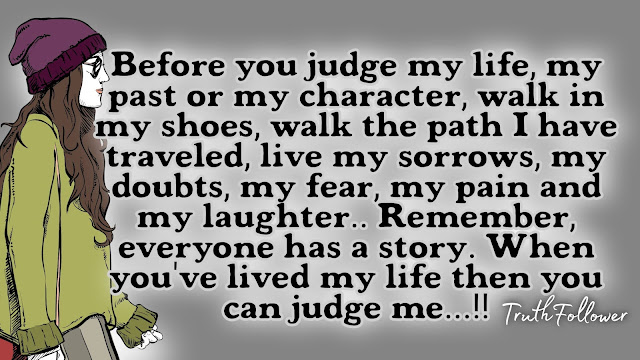 I get the warm fuzzies of this sentiment but it does not liberate the one with the story. It gives excuses but not hope for a better story; for a story with victory over hurts and sorrows and pains. GOD has already done the judging – He has judged ALL sin for whatever reason committed, and our only hope for victory is to help one another COME OUT of our sins and live a NEW STORY. As I said I get the sentiment. I get that we all want warm fuzzies, we all want acceptance, but it’s not sentiment that heals, It’s repentance, forgiveness, and obedience in love.