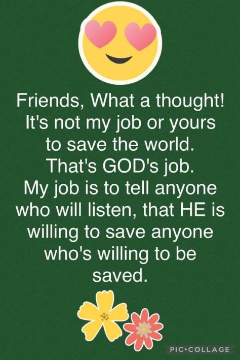 Today, a devotional reading told me GOD’s command to me is to Go into all the world and preach the Gospel to every creature.