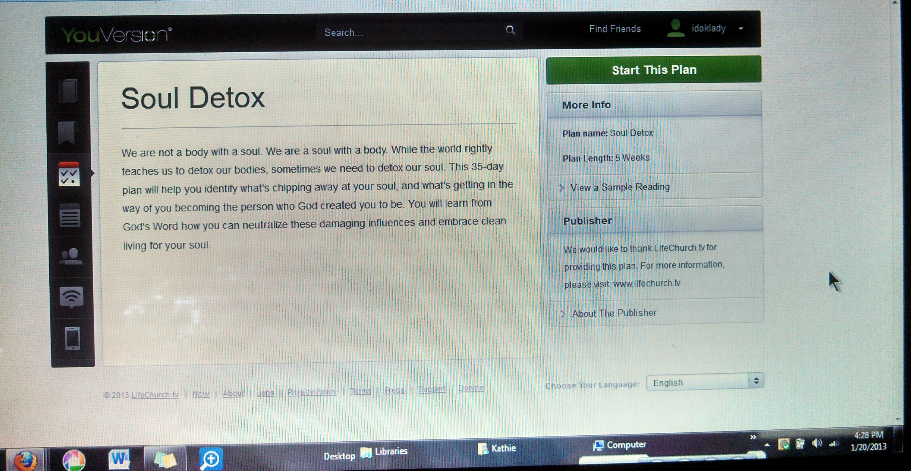 A 35 day soul detox program. Start date is 1.21.13 at You Version. Here’s an excerpt from the blog post announcing it.