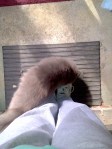 So even before slipping out of bed to start my Fly Lady routine, I was thinking about how to begin Today’s Giving Thanks devotion.  It would be entitled Ruthie. I thought about how blessed we are to have her companionship. Hubby now has a cat and a Kat to walk the driveway with him in the mornings as he is leaving for work. And one of them even meets him on the drive all cuddly and purring in the evening when he comes home. (Need I tell you which one?) We marvel over how she understands ‘no’ and obeys rather than darting into the house as she so longs to do. How she stretches in the sunshine; how patting a pile of soft towels just once was enough for her to return to them each evening.